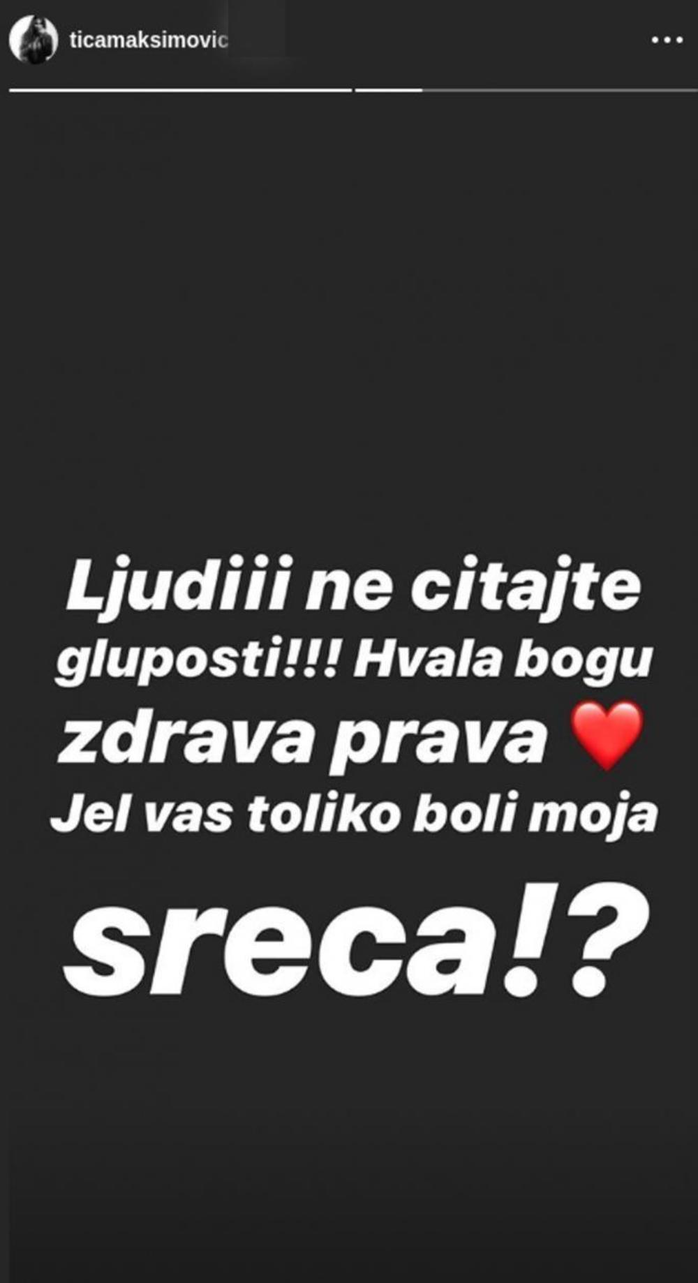 - Ljudi, ne čitajte gluposti! Hvala bogu, zdrava, prava. Je l vas toliko boli moja sreća? - pitala je tada Tijana.