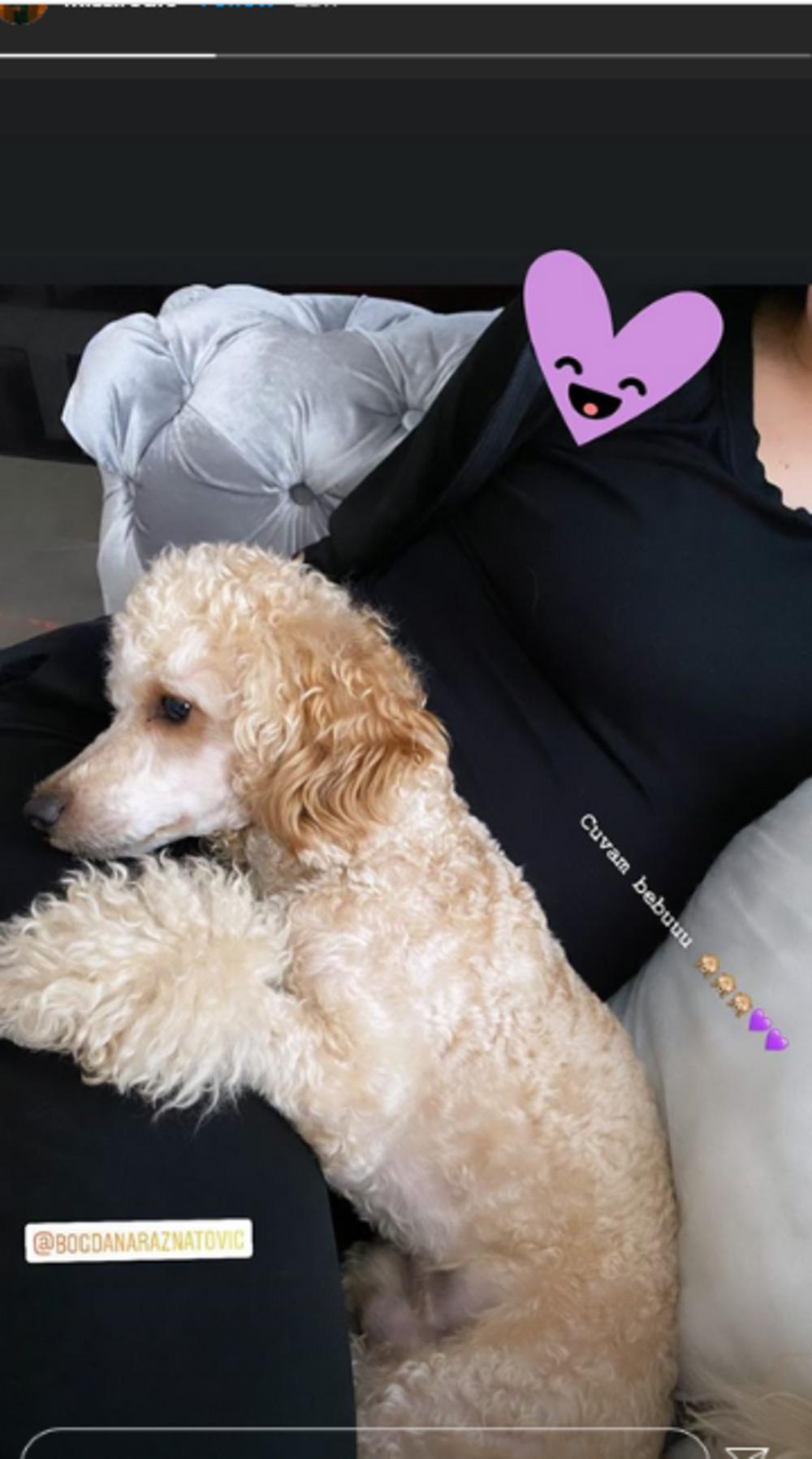 U znak podrške svojoj sestri, Nataša Rodić, podelila je na Insta "storiju" fotografiju Bogdane i kuce koja se smestila baš kod stomaka trudnice, sa sledećim opisom: