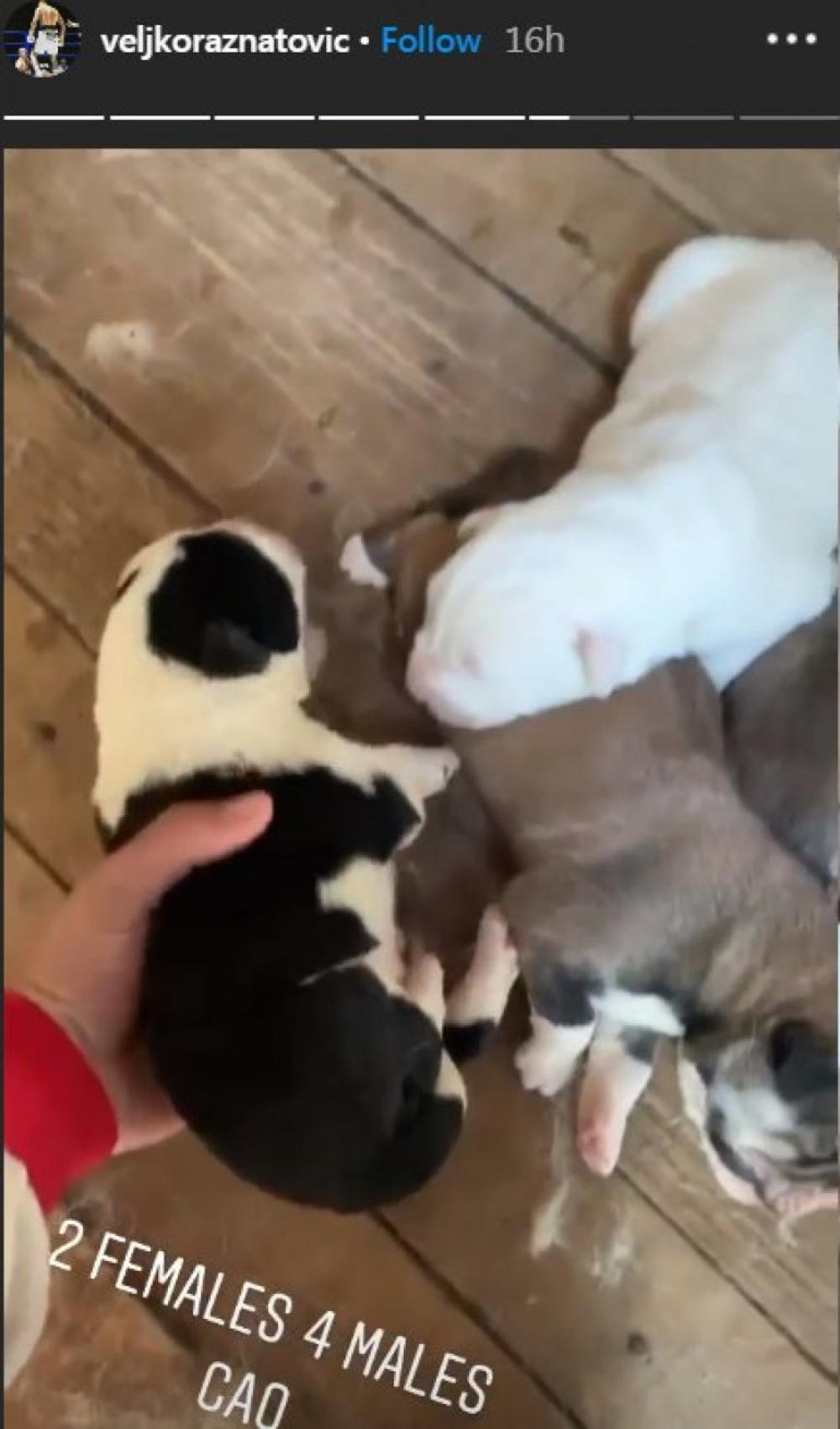 Bokser Veljko Ražnatović je juče u toku dana posetio svoje ljubimce, a jedna ženka je okotila šestoro štenadi. On je uzeo jedno u ruke hvaleći se na Instagramu, neznajući da će danas držati u naručje svog sina Željka koji je na svet došao u 10h.