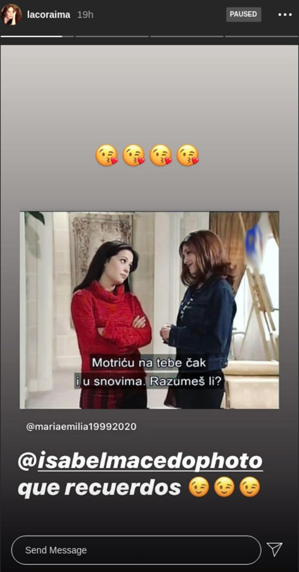 - Motriću na tebe, čak i u snovima. Razumeš li - piše na Koraiminoj objavi koju je posvetila glumici Isabel Masedo: