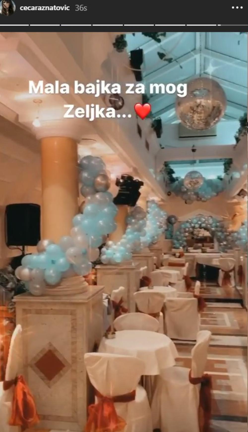 - Ceca nije pitala koliko košta kada je uzimala najskuplji apartman za snajku i unuka, da krenemo odatle, pa onda preko keteringa sa morskim plodovima, specijalitetima internacionalnih kuhinja, glomaznih i raskošnih plavo-zlatnih balona za dekoraciju, ali i mnogih drugih detalja za koje nije žalila dinara. Ona je opremila čitavu Željkovu sobu, koja liči na bajku. Pokupovala je sve moguće stvari koje će umnogome olakšati i Veljku i Bogdani. Specijalne poklone koje je ona lično naručila za Bogdanu i Željka takođe mnogo koštaju. Jedva čeka da stignu kući i da budu svi na okupu.
