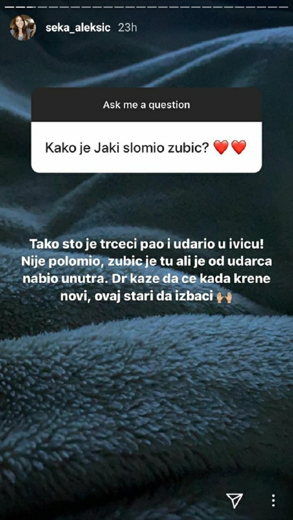 Pevačici je ubrzo stigao veliki broj pitanja, a jedan od pratilaca pitao je pevačicu i kako je Jakov slomio zub.