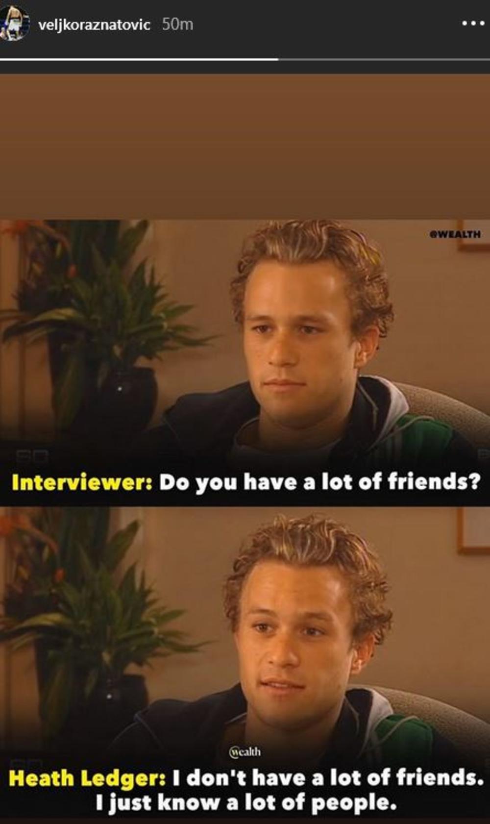 "Da li imaš mnogo prijatelja?", glasilo je pitanje, na koje je glumac odgovorio: "Nemam mnogo prijatelja, samo imam puno poznanika."