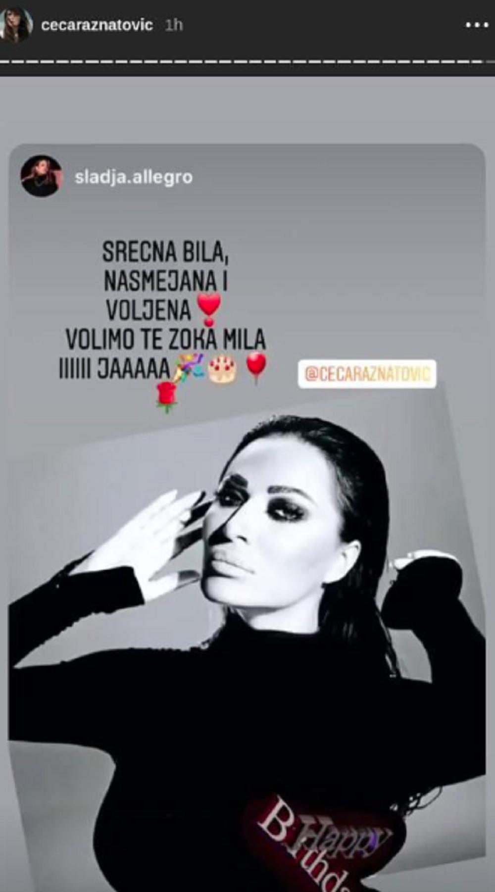 Međutim, pevačica je dobila veliki broj čestitki, uglavnom od svojih fanova, što je pokazala na svom Instagramu. Međutim, kada su pitanju kolege, stvar je bila nešto drugačija, pa je Ceca podelila samo jednu čestitku i to od prijateljice Slađe Alegro.