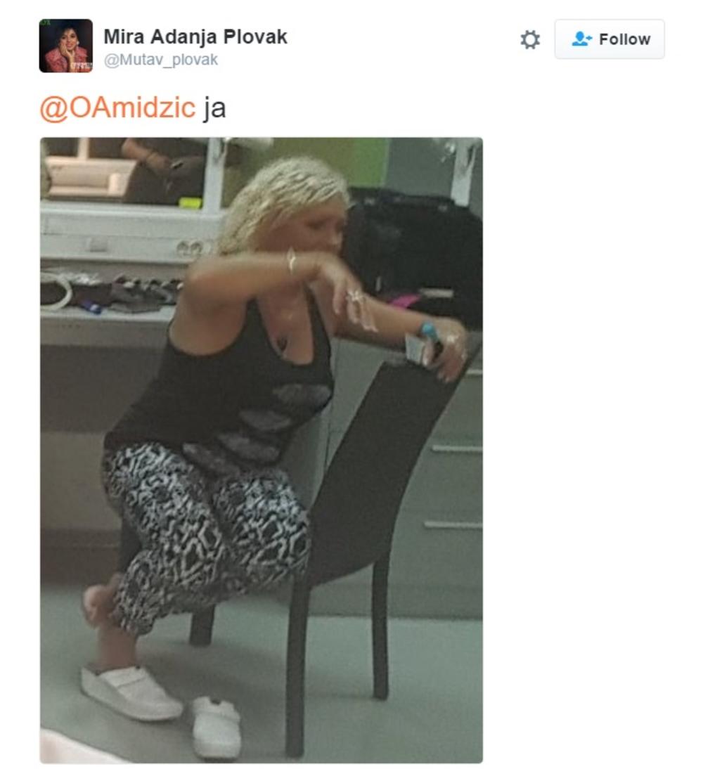 Reč je o Marini Perazić koja se "sakrila" u ćošku fotografije. Poza koju je ona zauzela je komična - na stolici, sa prekrštenim nogama i razmahanim rukama! Čist entuzijazam!