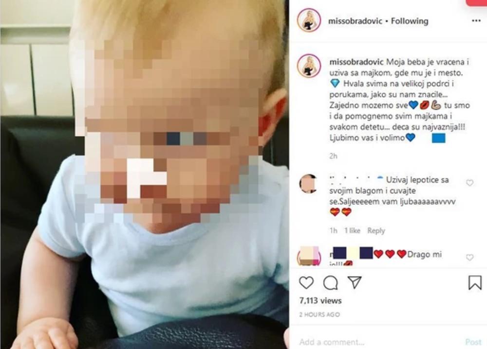 - Moja beba je vraćena i uživa sa majkom, gde mu je i mesto. Hvala svima na velikoj podršci i porukama, jako su nam značile. Zajedno možemo sve. Tu smo i da pomognemo svim majkama i svakom detetu. Deca su najvažnija. Ljubimo vas i volimo - napisala je Sandra na Instagramu.