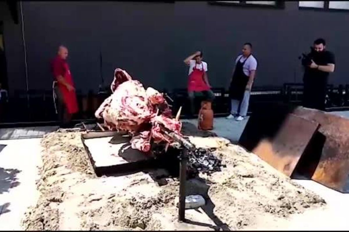 Oni što je svima skrenulo pažnju jeste vo koji se pekao ispred hotela, a koji će ubrzo biti serviran gostima.