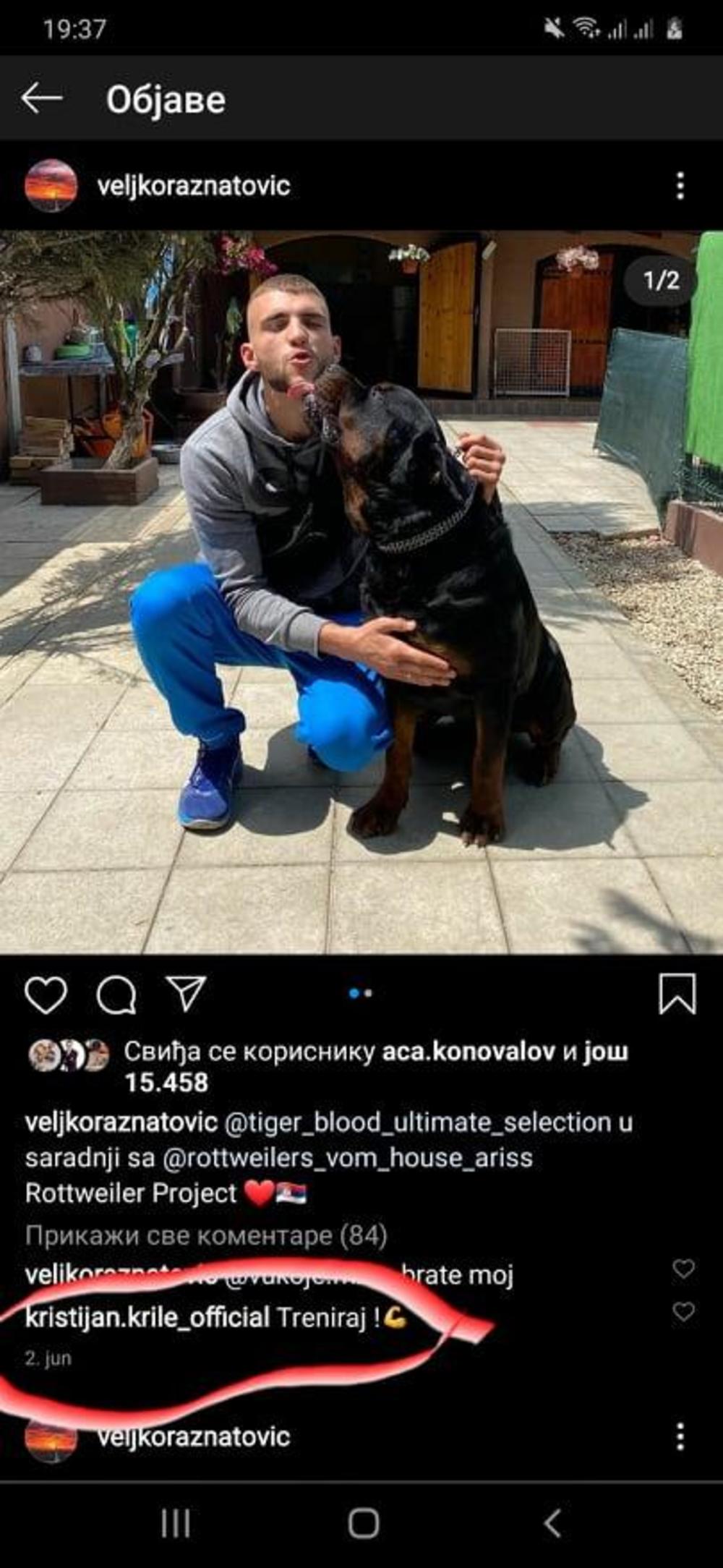 Mldi Ražnatović je pokazao psa rase Rotvajler i u opisu slike stavio naziv odgajivačnice u čijem je vlasništvu pas, Golubović ga prozvao komentarom da treba da trenira.
