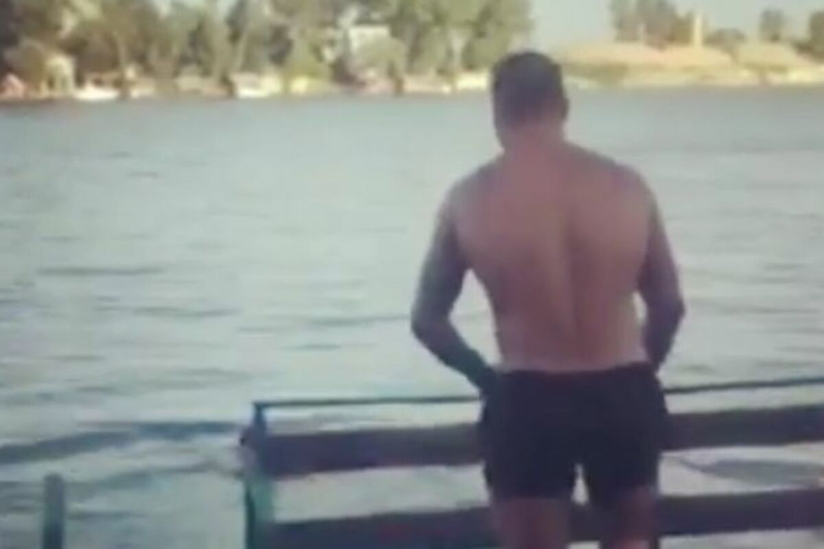 Naime, mladi Šijan se popeo na ogradu i skočio u reku, ali nije primetio da su mu kupaće malo spale. Iako je skok bio skoro savršen, njegovi prijatelji su primetili da mu je "ispala guza".