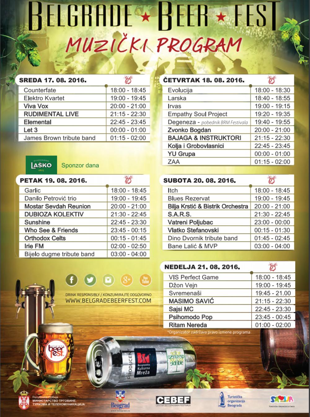 Na festivalu će pored pomenutih nastupiti još i bendovi Counterfate, Elektro Kvartet, srspki a kapela hor Viva Vox, Danilo Petrović trio, Bane Lalić & MVP i mnogi drugi, a publika će tokom pet dana, osim u dobroj muzici, moći da uživa i u preko 100 vrsta piva. Dugogodišnji partneri festivala Apatinska pivara i Heineken kompanija će specijalno za potrebe Beer Festa uvesti i ekskluzivne pivske brendove.