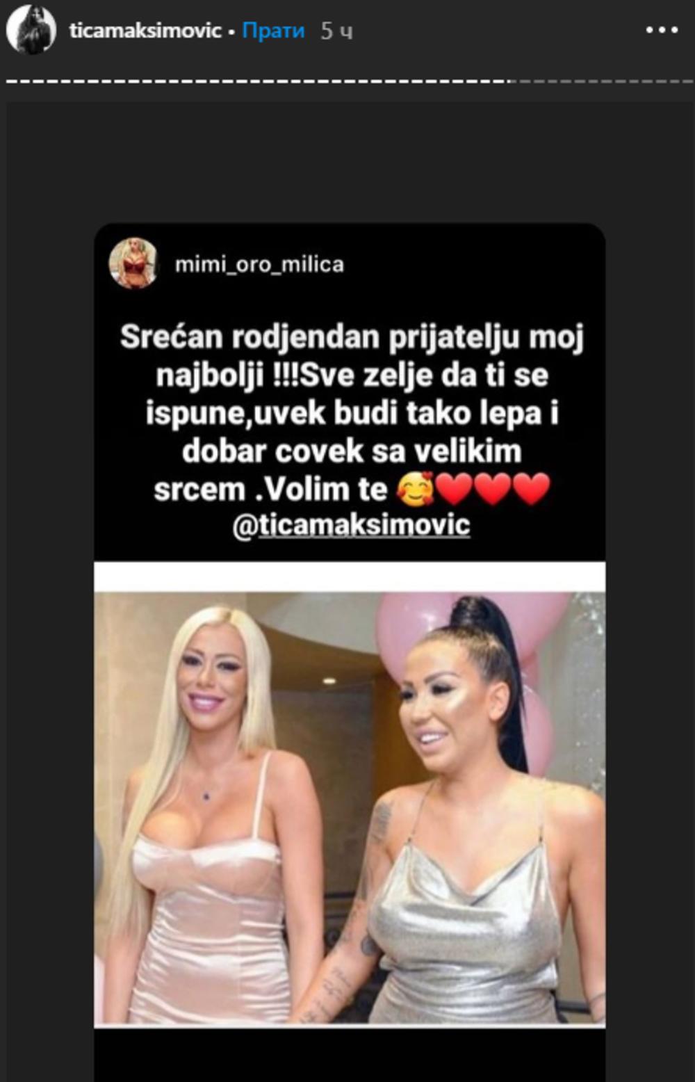 Sada je na slobodi gde uživa sa prijateljima i porodicom, a jedna od njenih najboljih drugarica, starleta Mimi Oro, ovako joj je čestitala rođendan: