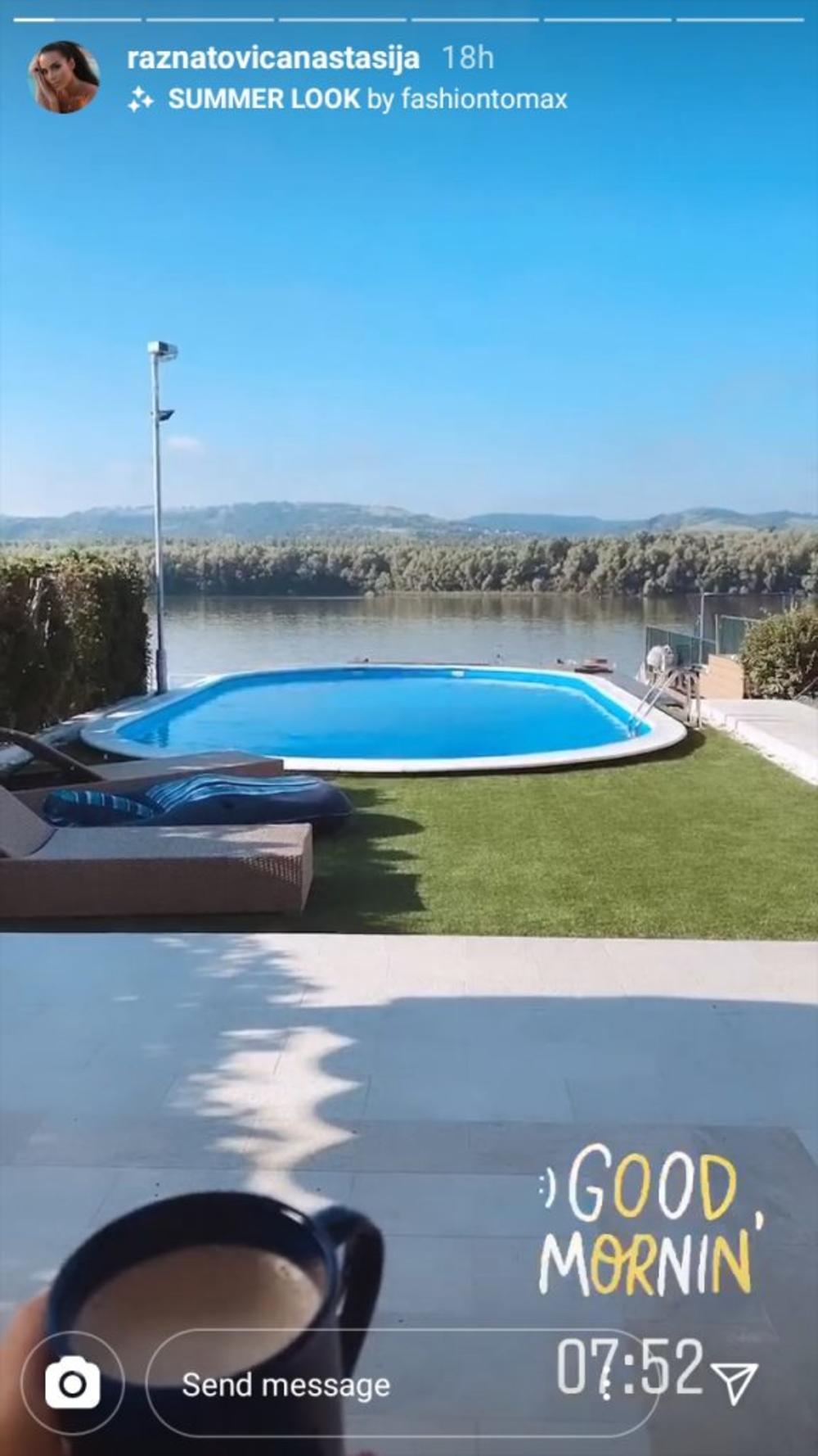 Anastasija je pratiocima na Instagramu i vidu Instagram storija pokazala kako u krupnom planu izgleda dvorište njenog dečka u kojem uživa uz kafu u jutarnjim časovima i malo ko joj nije pozavideo na ovoj raskoši.