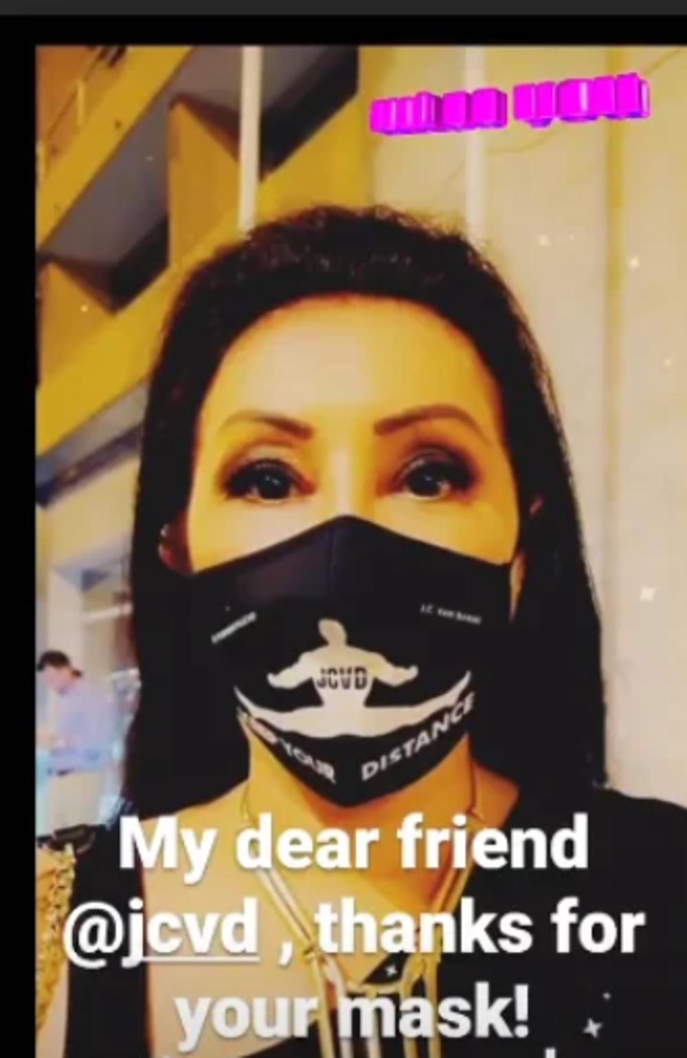 Veliku pažnju njenih pratilaca privukla je zaštitna maska koju je tom prilikom nosila na licu. Naime, ona ju je dobila od svog velikog prijatelja, holivudskog glumca Žan Klod Van Dama.