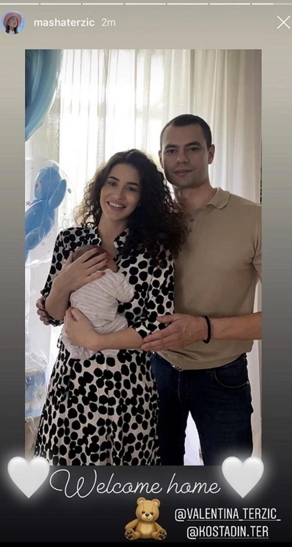 Kostadinova supruga Valentina Terzić i maleni Vuk stigli su kući iz porodilišta, a tada je nastala i prva porodična fotografija.