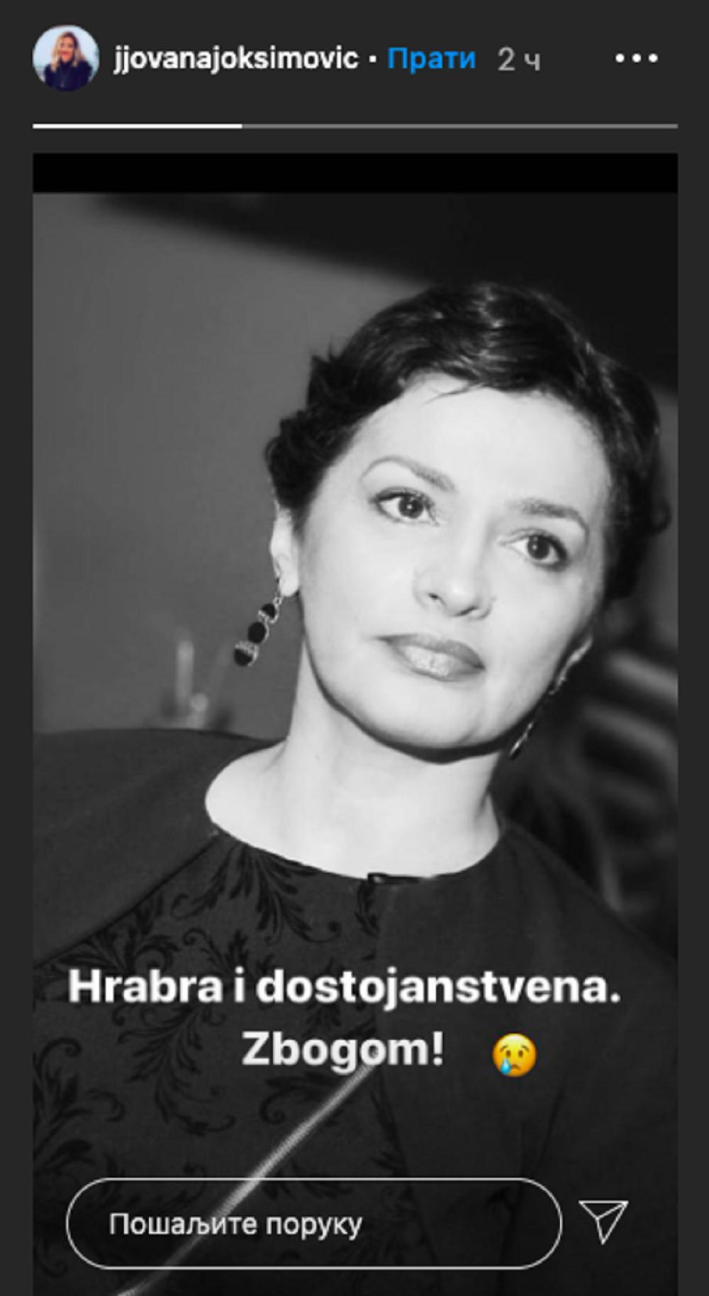 “Hrabra i dostojanstvena. Zbogom”, stoji u objavi Jovane Joksimović.