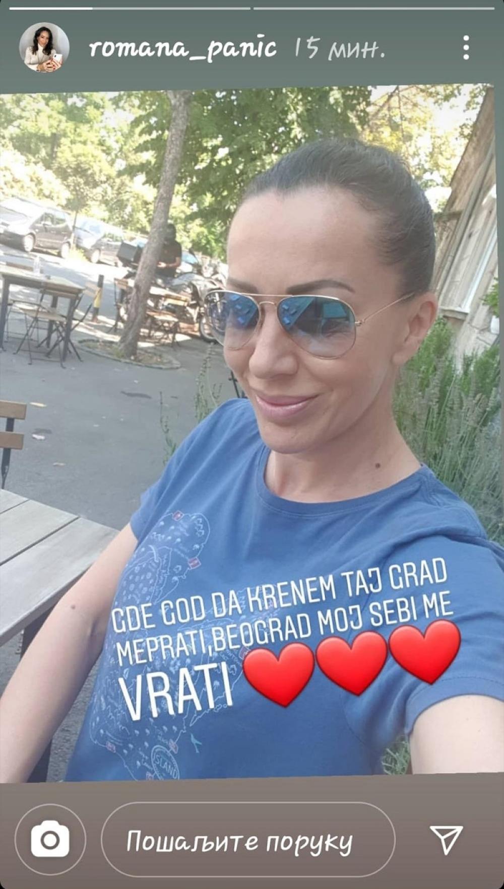"Gde god da krenem taj grad me prati, Beograd moj sebi me vrati", napisala je Romana na fotografiji na kojoj pozira u kafiću, nasmejana.