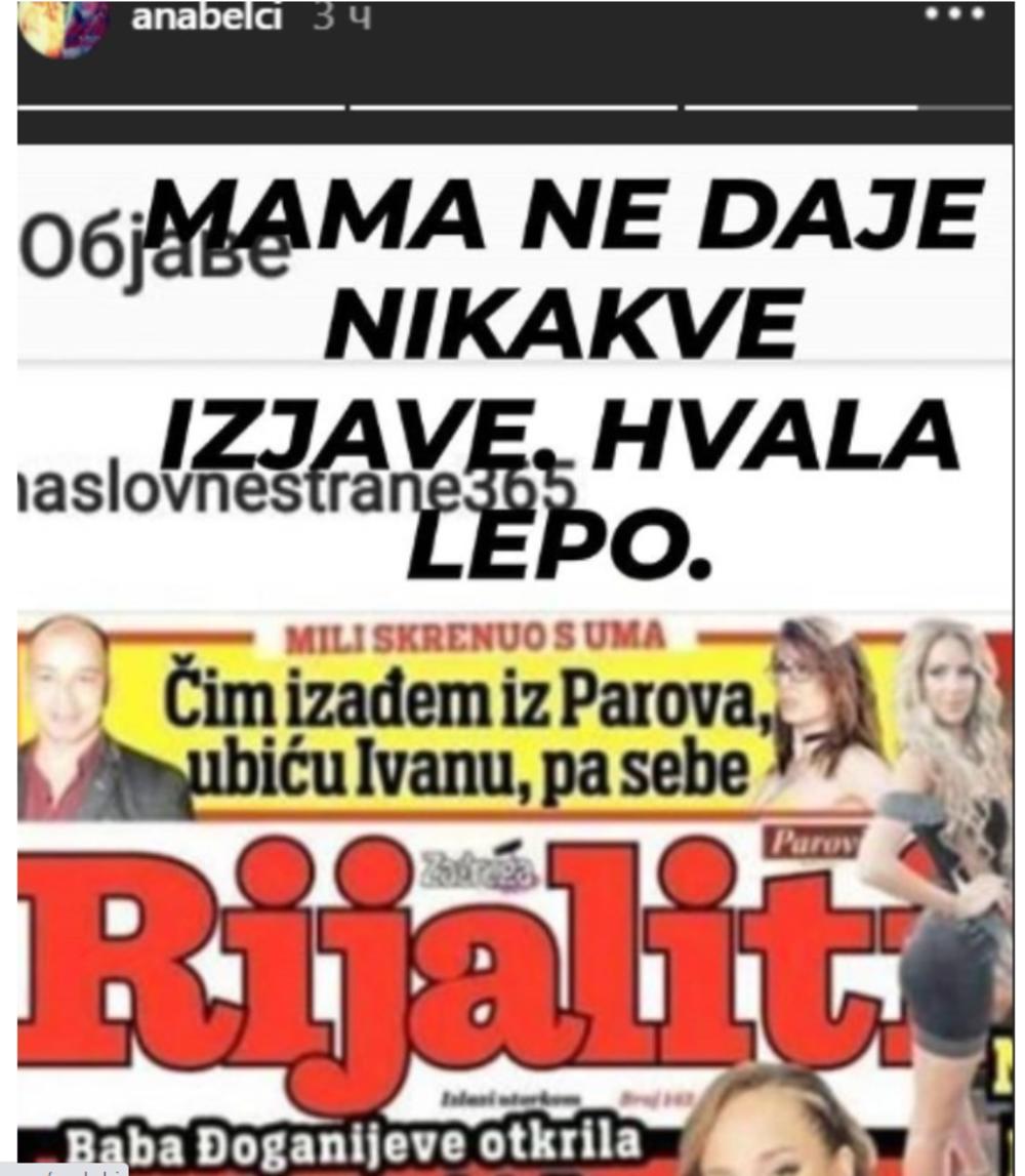 - Mama ne daje nikakve izjave. Hvala lepo - bila je kratka i jasna Anabela na svom Instagram storiju, na kom je i demantovala ove navode.