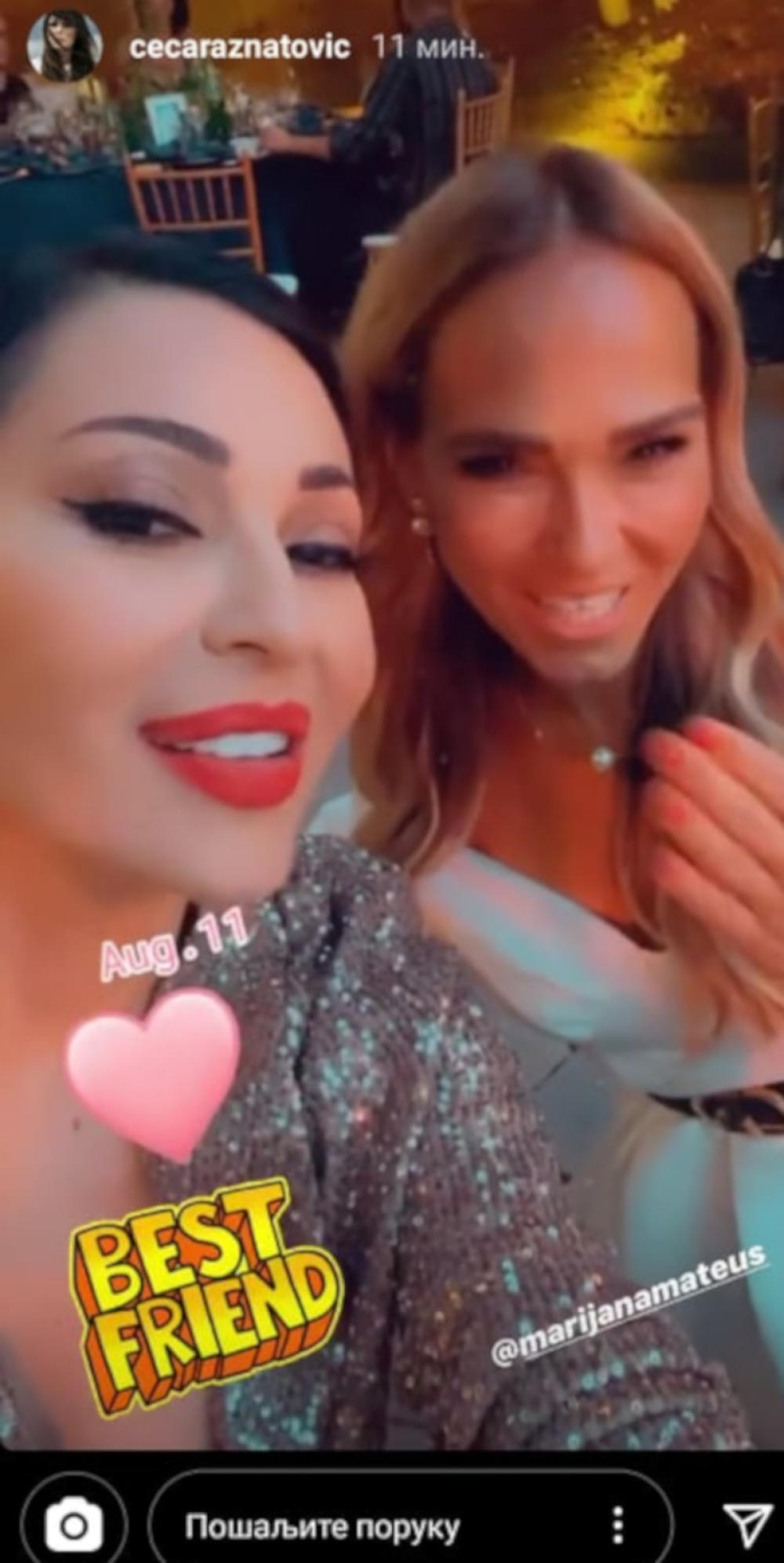 Ona je u društvu dobre prijateljice i Vladimira Arsenijević sa kojima se snimala za Instagram stori i sa kojima nazdravlja.