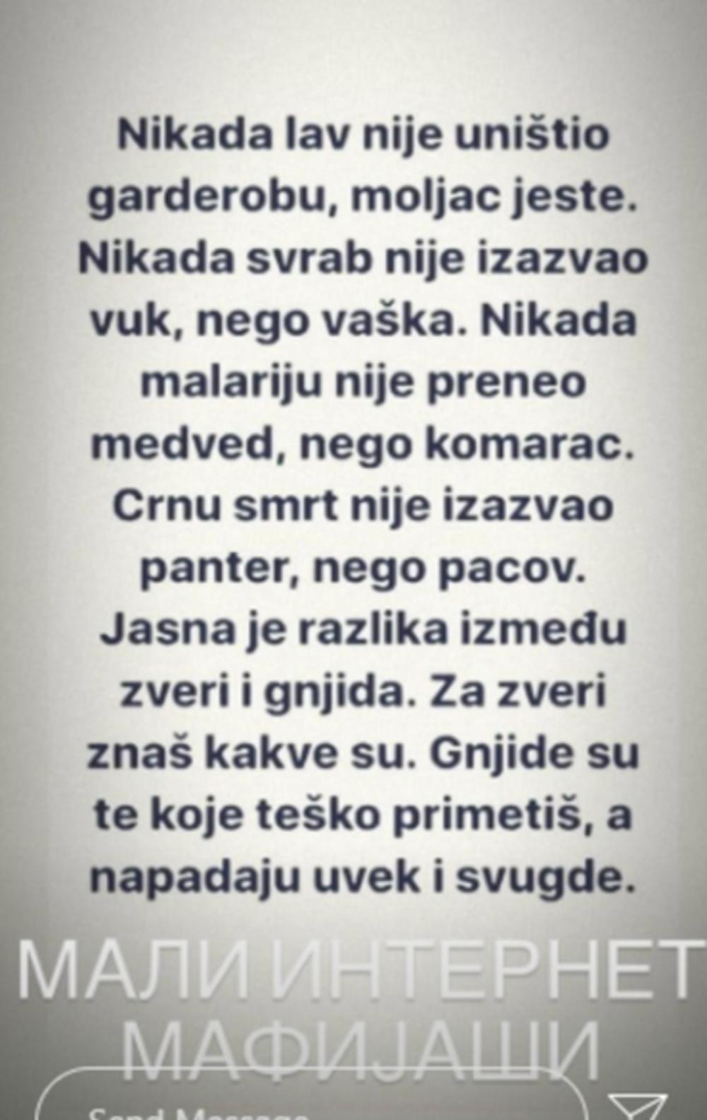 Na koga se ova poruka odnosi, bokser nije otkrio, a da li će uskoro isplivati neka informacija, ostaje da vidimo.