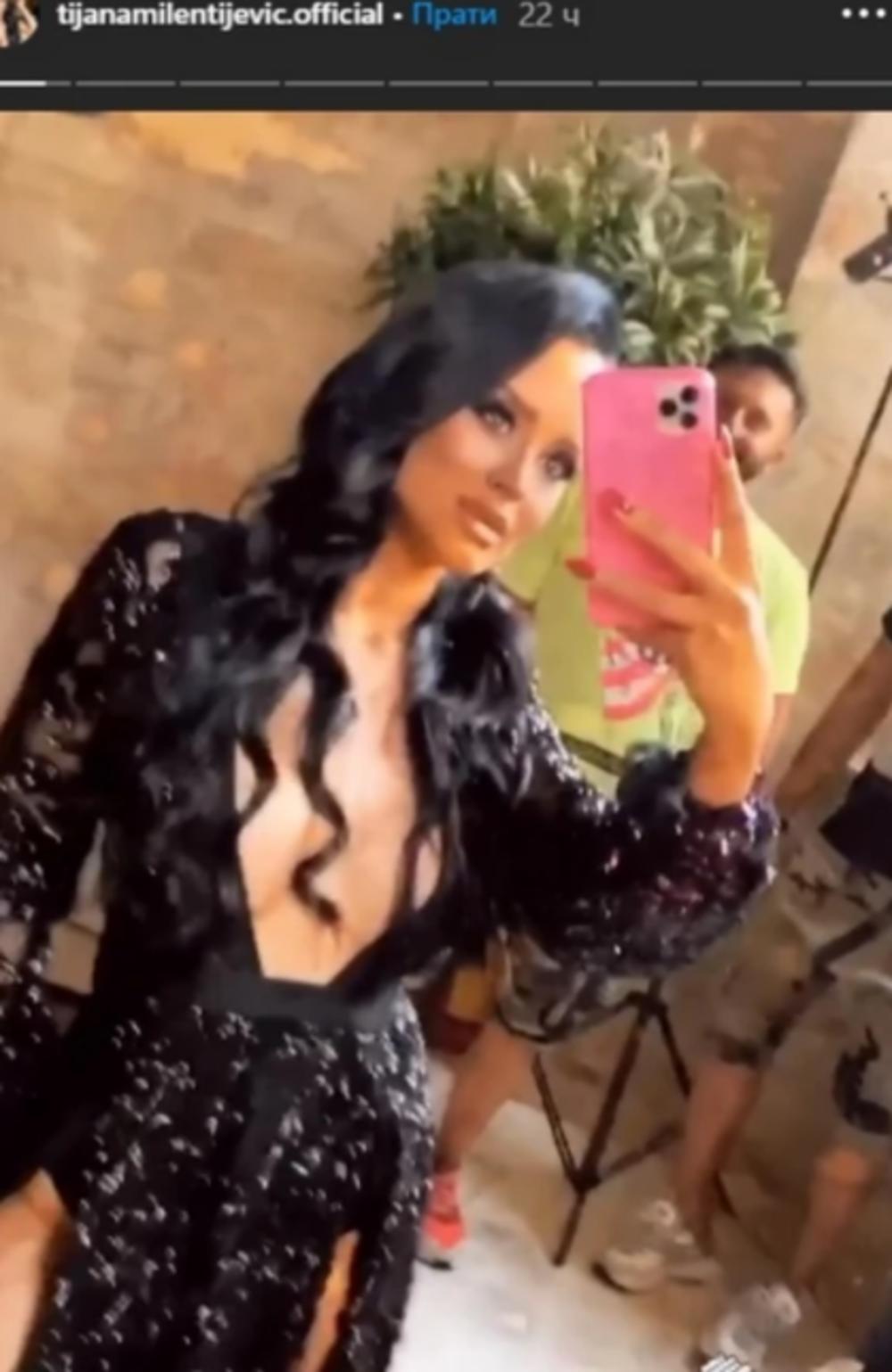 Naime, Tijana je na Insta storiju objavila fotografiju u crnoj dugoj haljini, sa dubokim dekolteom koji je isticao njene grudi.