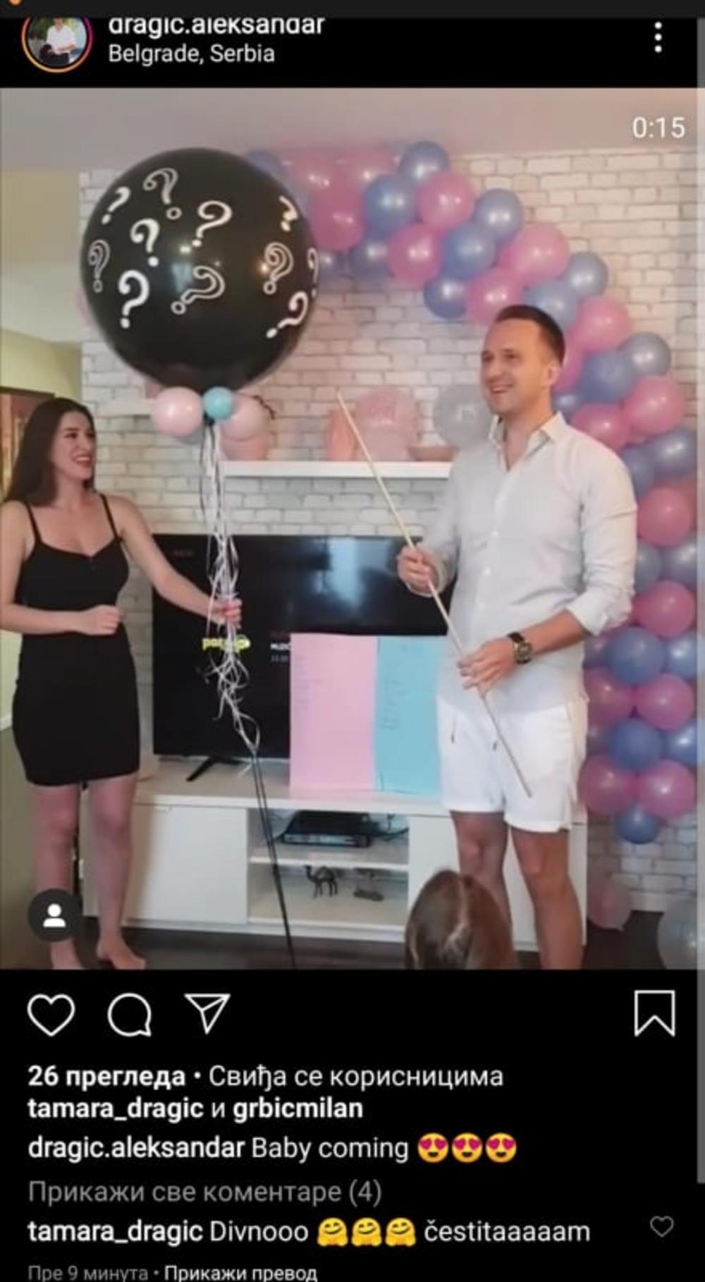 Interesantno je da je među mnogobrojnim čestitkama Aleksandru i Jovani, na "Instagramu", ovog paru čestitala i Dragićeva bivša supruga, pomenuta pevačica Tamara Dragić.