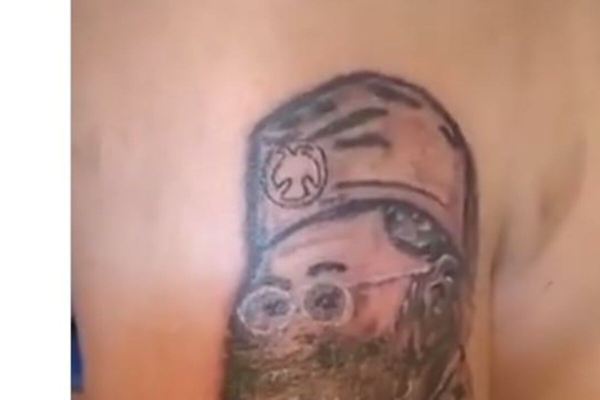 Umesto Dražinog lika, tetovaža izgleda zaprljano i jedva da se rasaznaje čiji lik bi trebalo da bude naslikan.