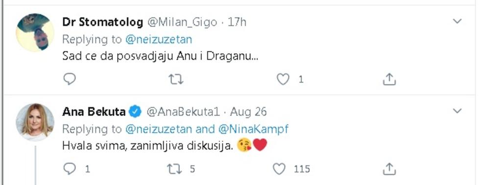 SAD ĆE DA POSVAĐAJU DRAGANU I ANU? Ovako je Bekuta reagovala zbog rasprave na Tviteru! (FOTO)