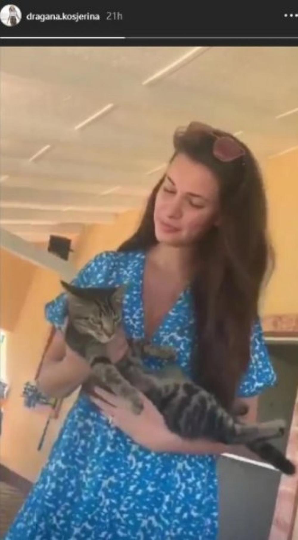 Lepa voditeljka je pozirala sa mačkom u naručju, imala je plavu lepršavu haljinu, a lice je krasio blistavi osmeh.