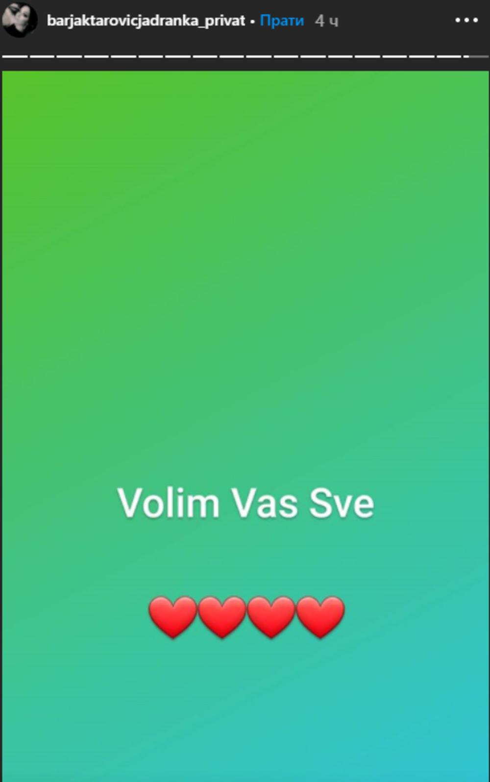 - Volim Vas sve - poručila je crnogorka i dodala srca kao propratnu poruku.
