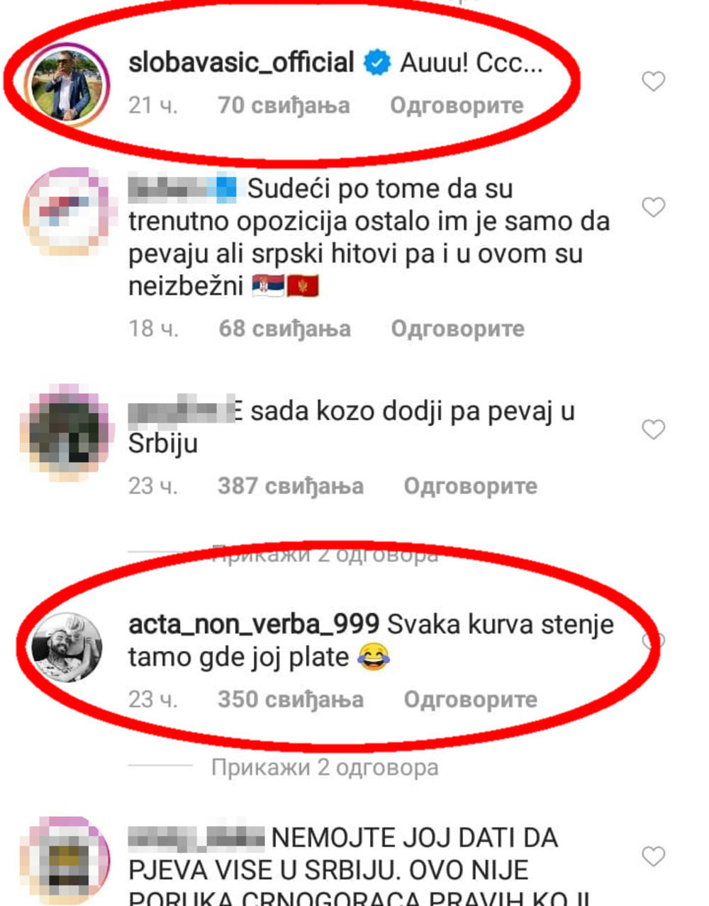 Mnoge njene kolege sa estrade su se pobunile, pa su je iskritikovale, a jedan od njih je bio i pevač Sloba Vasić koji je kratko i jasno negodovao pevačicin nastup, a na njegov komentar se nadovezao i bivši učesnik rijalitija "Parovi" Božidar Milovanović koji nije birao reči izrevoltiran pevačicinim postupkom.