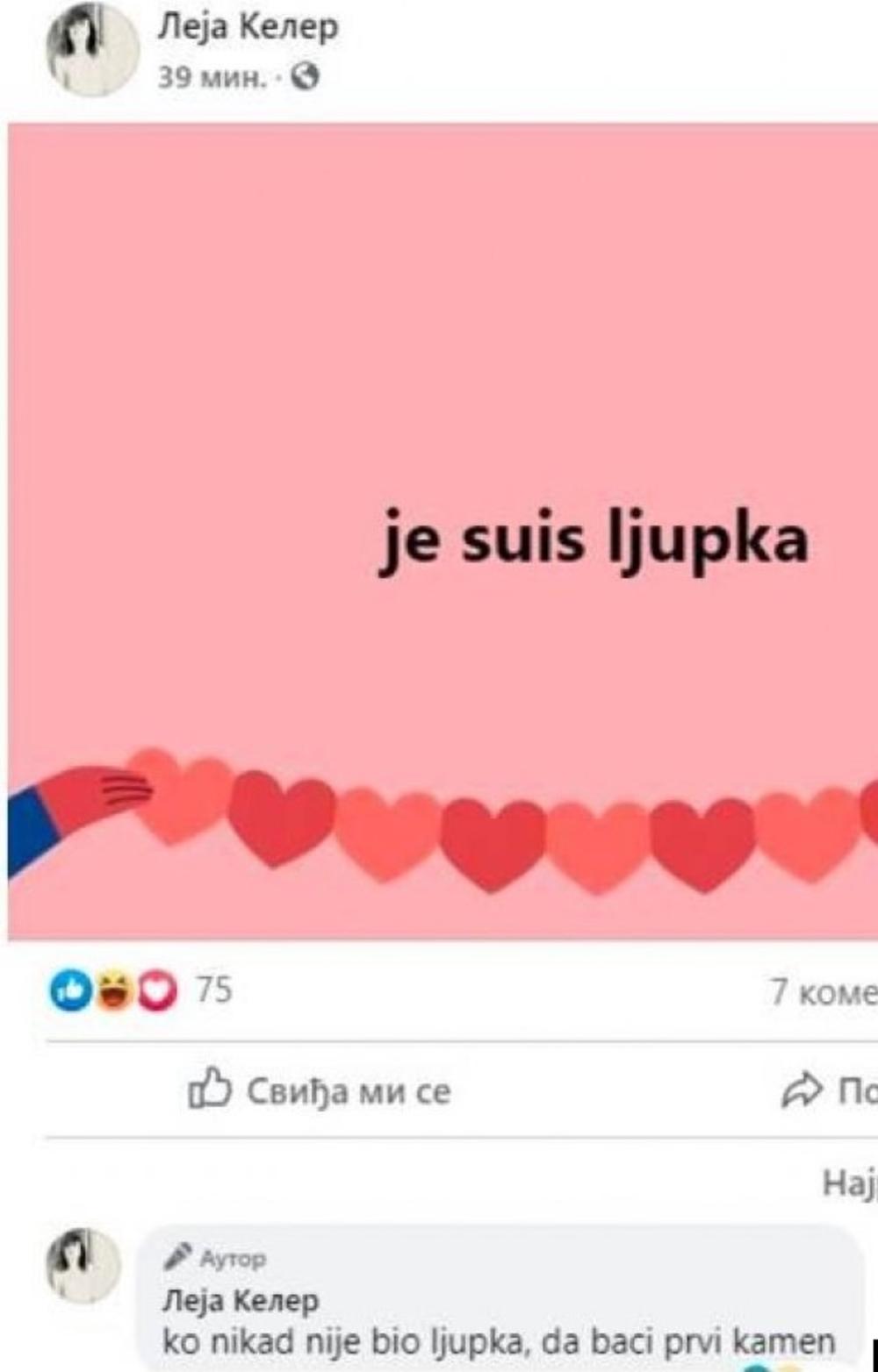 Biljana se pronašla u Ljupkinoj situaciji, pa je na svom Fejsbuku napisala: "Jes suis Ljupka" (franc. Ja sam Ljupka). Ona je potom u komentaru dodala: