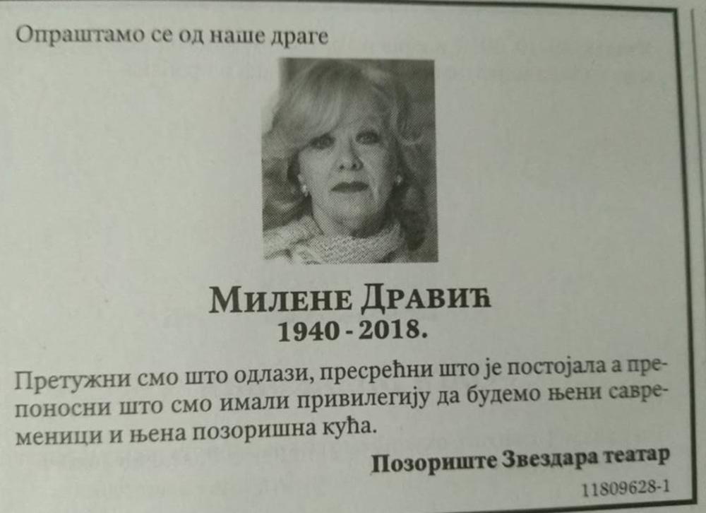 Pre tačno dve godine 14. oktobra 2018. godine napustila nas je najveća diva srpskog i jugoslovenskog filma, legendarna Milena Dravić.