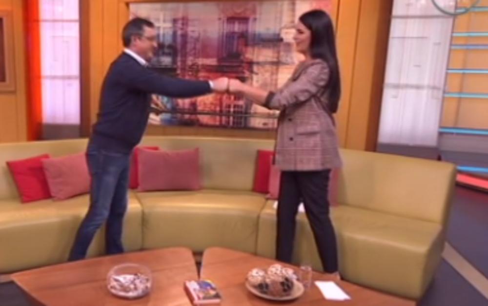 Kada je stigao u emisiju, Voja je već sa vrata nasmejao i voditeljku Mariju Kilibardu, a onda ga je oberučke dočela i ugostila.