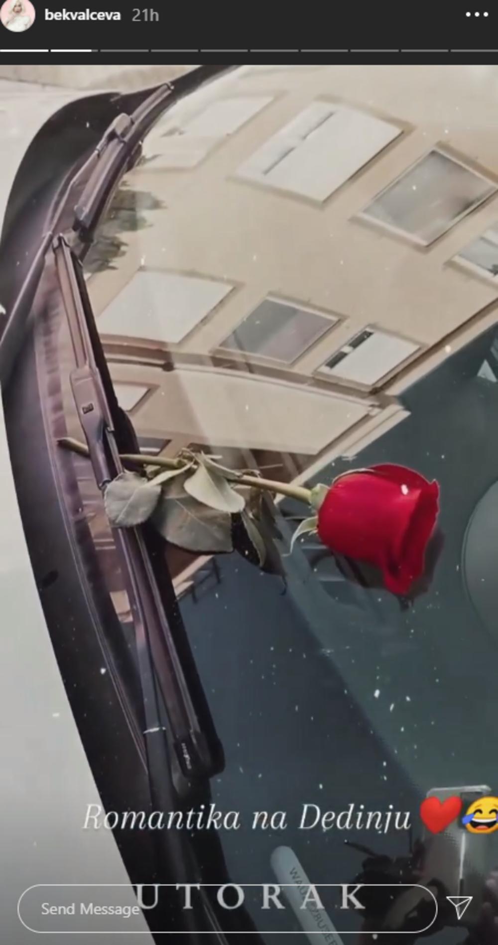 Ona je na svom Instagram storiju objavila video u kome se vidi kako je na šoferki automobila zakačena za brisač sačekala crvena ruža.