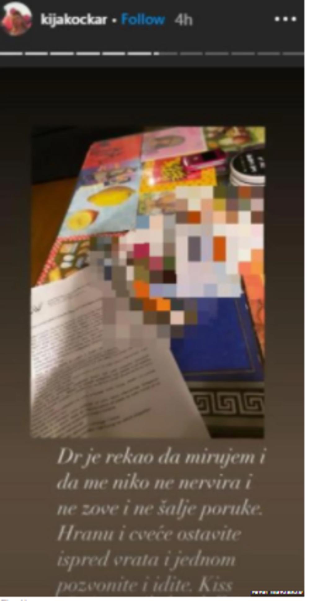 - Doktor je rekao da mirujem i da me niko ne nervira i ne zove i ne šalje poruke. Hranu i cveće ostavite ispred vrata i jednom pozvonite i idite. Poljubac - napisala je Kija na Instagramu.
