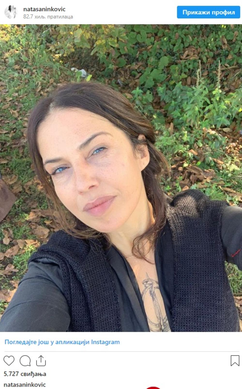 Naime, Nataša je napravila selfi u crnoj majici sa većim dekolteom, gde se na poprsju jasno vidi tetovaža u obliku zmije.