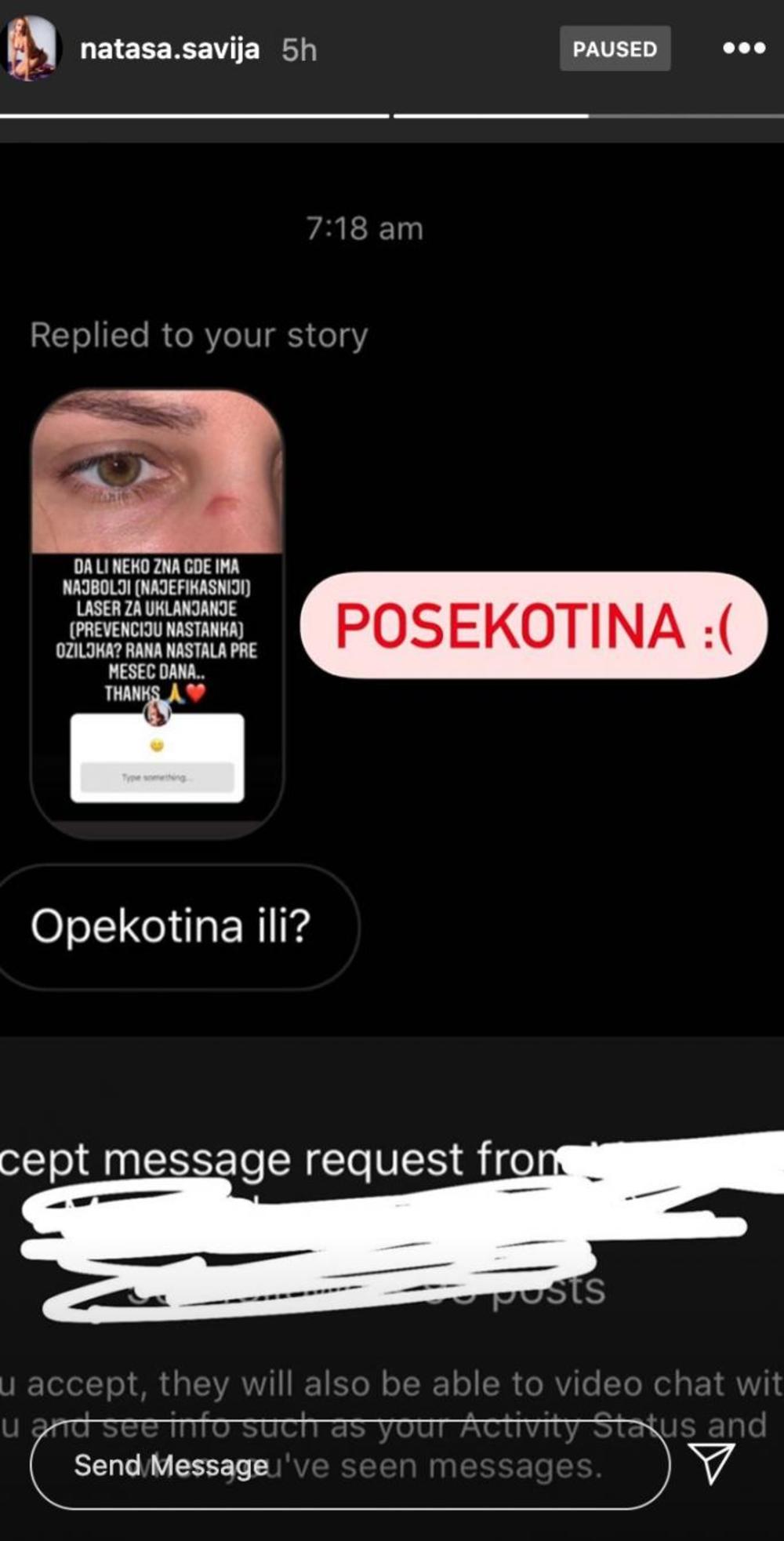 Naime, ona ima ranu na nosu, koja izgleda kao da je blizu oka, a za koju postoji mogućnost da pređe u ožiljak. Nataša je pitala da li neko zna gde to može da se reguliše: