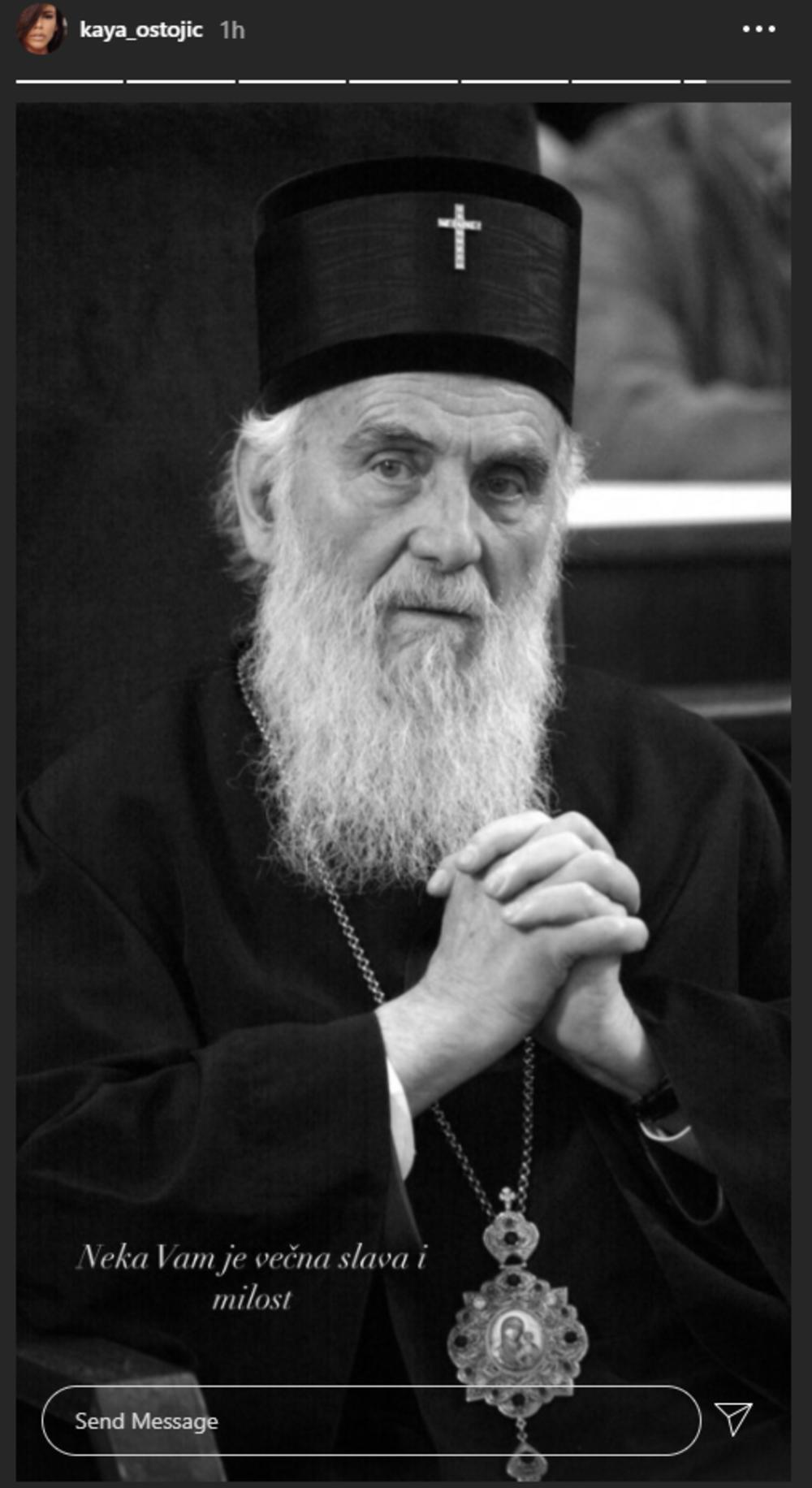 Viki Miljković je na Instagram storiju postavila fotografiju upokojenog patrijarha: Večni pomet i carsko nebestko.