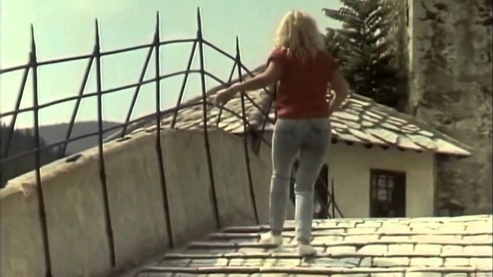 U pitanju je scena gde Lepa Brena beži od ljudi koje je jure u Mostaru, a na kraju skače sa čuvenog Starog mosta u ovom gradu.