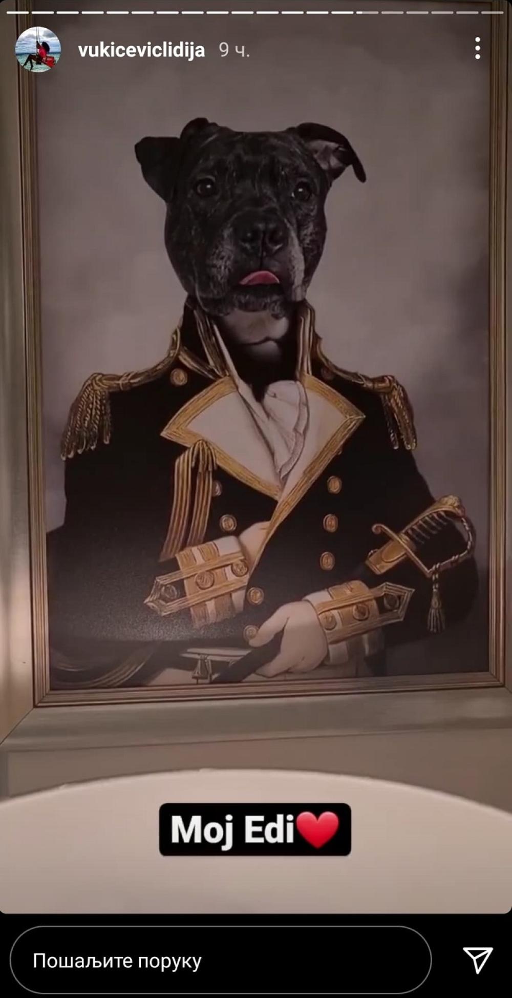 Vukićevićeva je danas na svom Instagram storiju pokazala jedan od zidova svog stana na kome ponosno pozira jedan od njenih pasa, koga je glumica nazvala Edi.