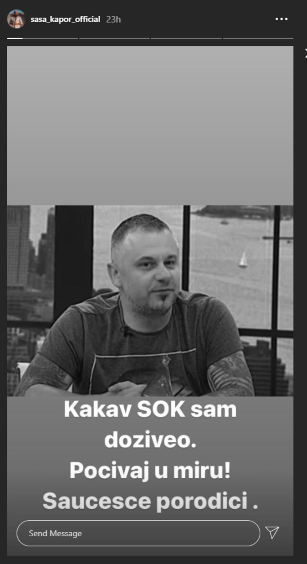 - Kakv šok sam doživeo. Počivaj u miru! Saučešće porodici! - piše u okviru objave pevača Saše Kapora.