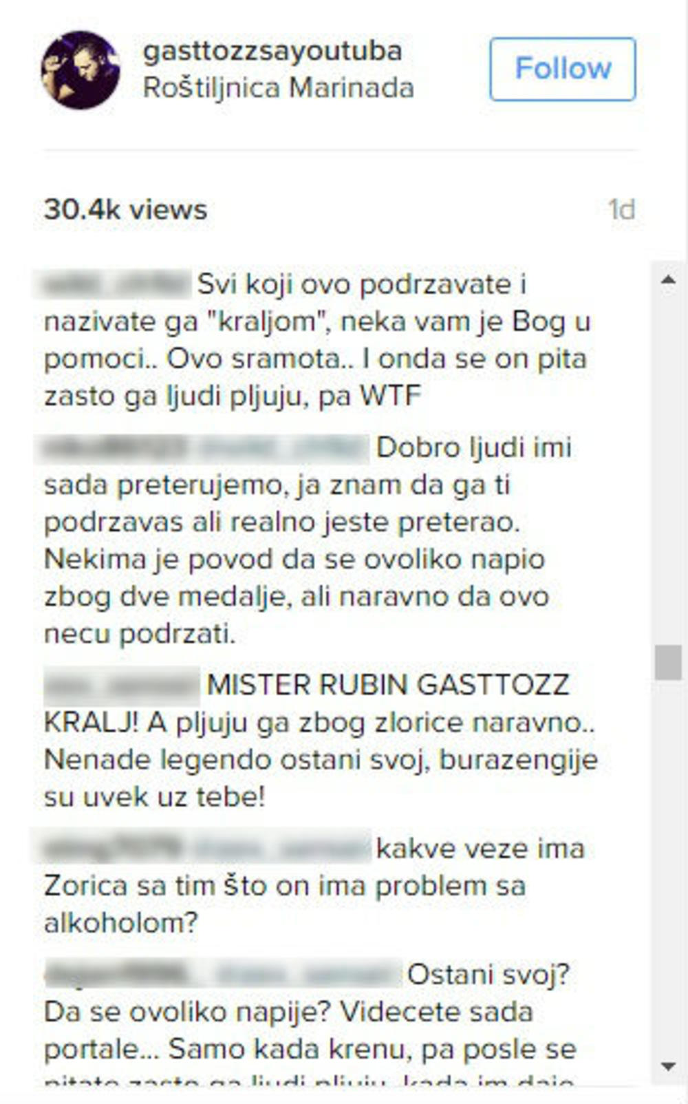 Nenad Marinković Gastoz izazvao je lavinu komentara kada je postavio video snimak na Instagram