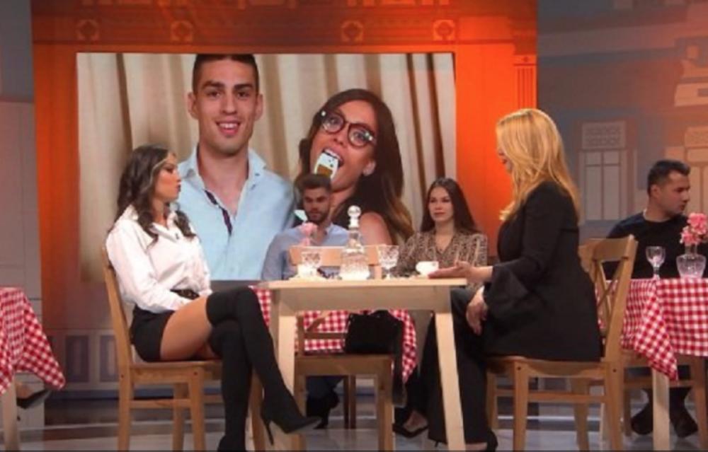 Mirka je za gostovanje obukla belu košulju, koju je zakopčala do grla, ali je dole rešila da pokaže, moglo bi se reći i previše. Kožni minić i čizme iznad kolena otkrili su duge i izvajane glumičine noge.
