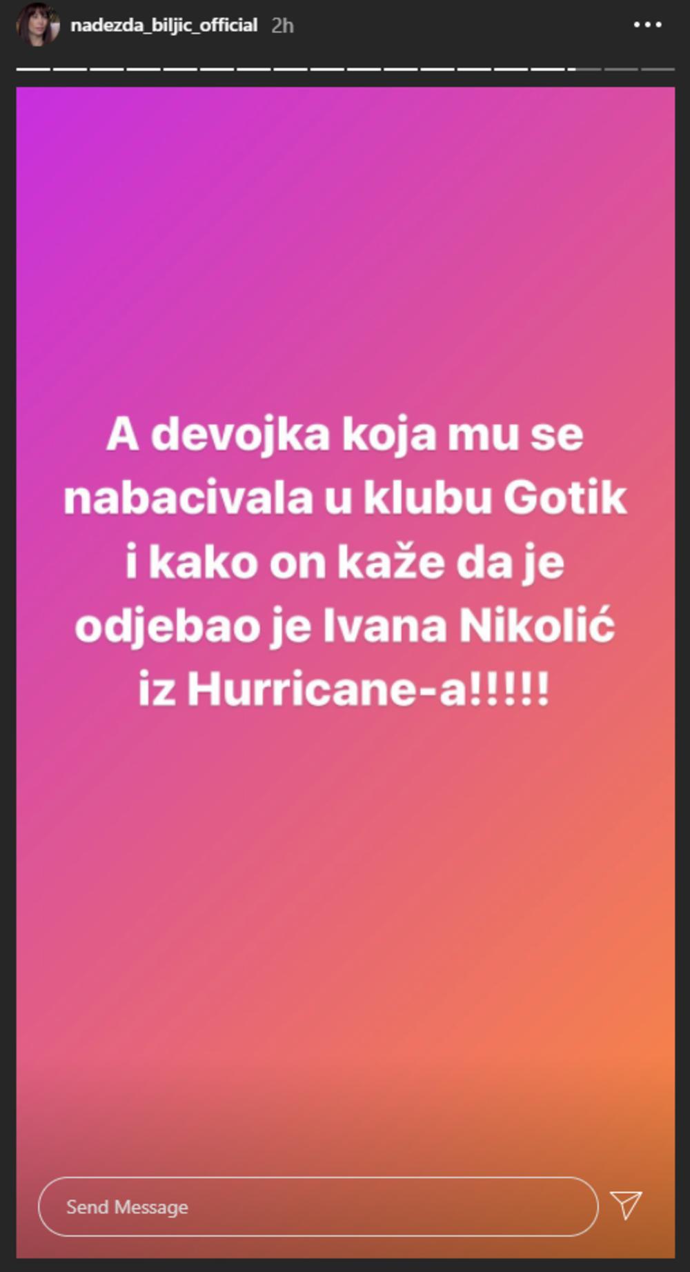 Biljićeva se nakon Tominog razgovora sa Ša oglasila na Instagramu, gde je između ostalog obelodanila da je izvesna devojka koja je Tomi prišla u klubu, pevačica Ivana Nikolić iz grupe "Hurricane".
