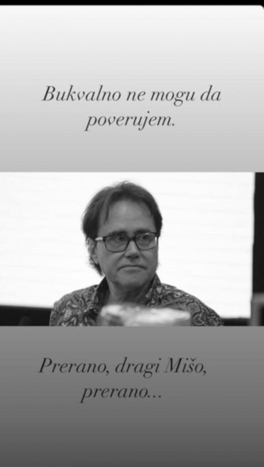 - Miša je 17 dana bio u bolnici, od toga 8 dana na respiratoru. Borio se. Borili su se i svi u bolnici na Bežanijskoj kosi. Hvala svima. Iskreno saučešće porodici . Nikad neću zaboraviti Mišu. Pravi prijatelj i saradnik - rekao je Bane.