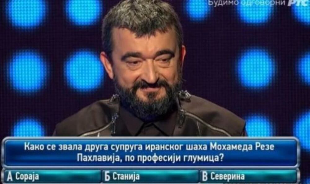 - Kako se zvala druga supruga iranskog šaha Mohameda Reze Pahlavija, po profesiji glumica? - pročitao je pitanje voditelj Jovan Memedović.