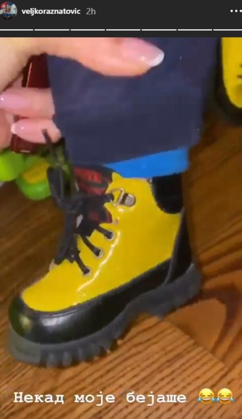 "Nekad moje bejaše", napisao je Veljko u opisu cipelica žute boje, koje su pripadale njemu, a sad ih nosi njegov naslednik.