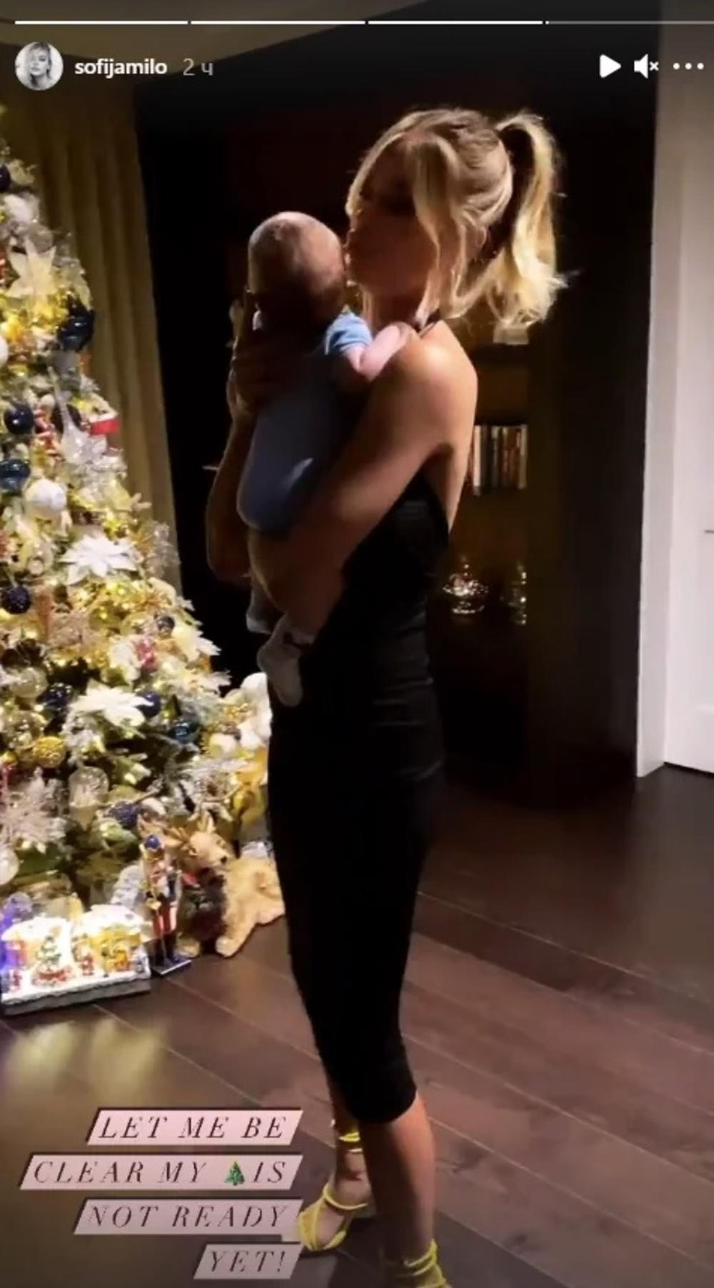 Sofija je svoijm Instagram pratiocima pokazala kako izgleda njihova jelka, a na snimku svog mezimca nije ispuštala iz naručja.