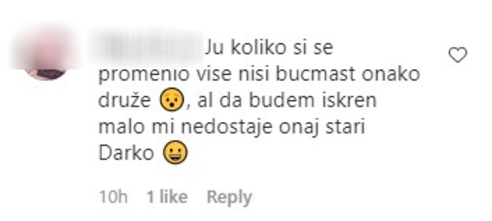 "Nedostaje onaj stari Darko, više nisi bucmast", "ne stoji ti plavo", "koliko si se samo promenio, bolje je bilo pre", neke su od poruka koje se mogu pronaći.