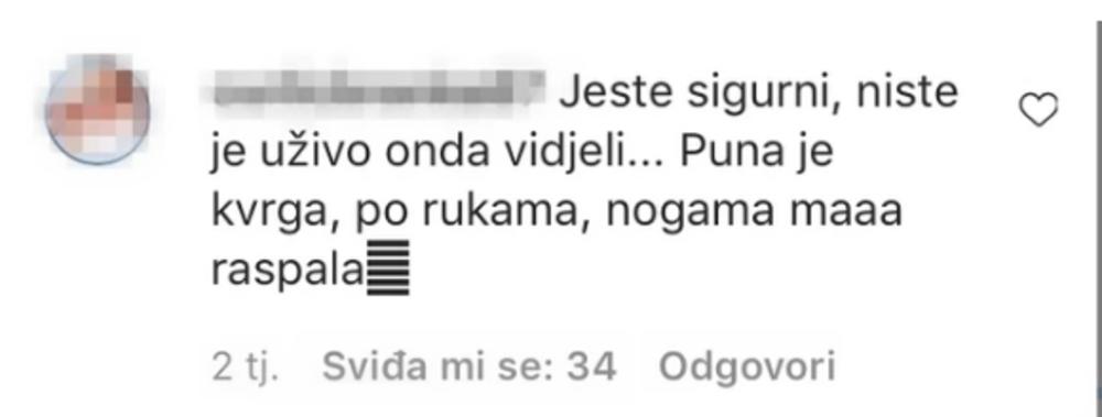 "Niste vi nju uživo videli. Puna je kvrga po rukama, nogama...", bio je jedan od komentara pratiteljke.